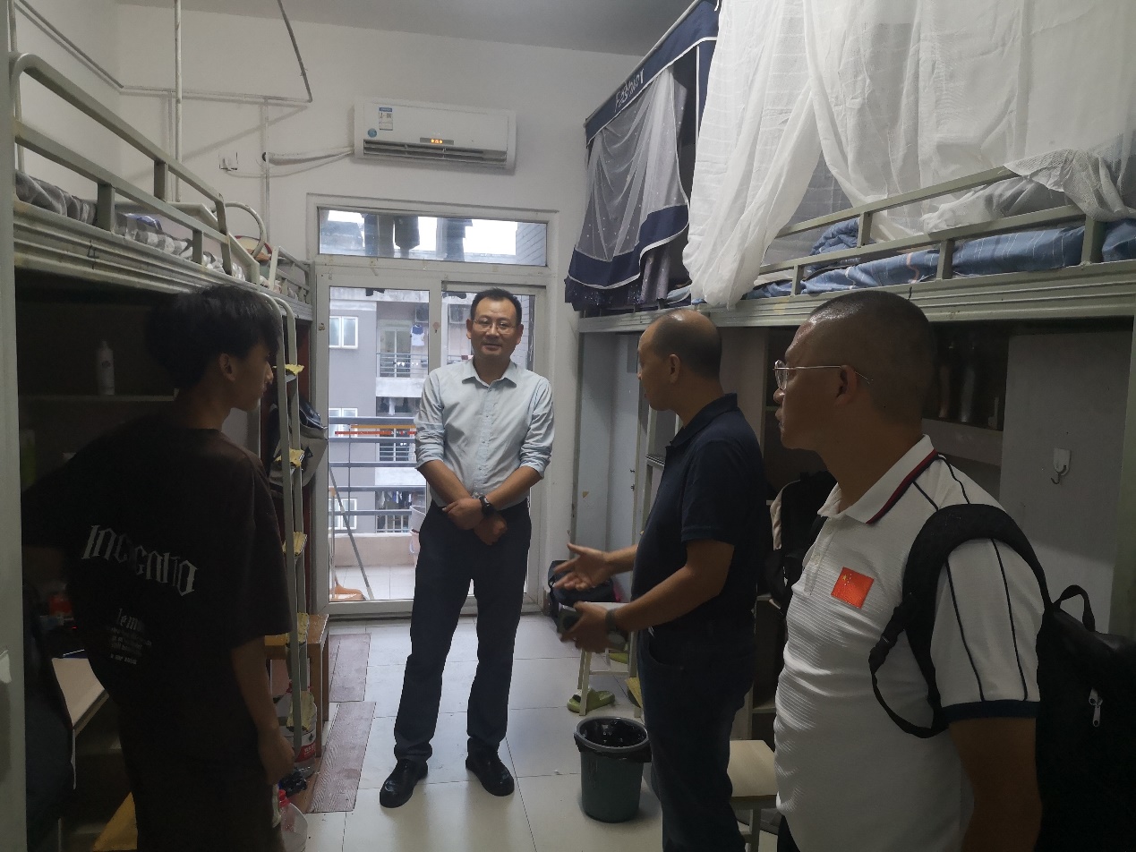 “你是来自哪里?到学校还习惯吗?”走访过程中,张彦一行来到男生寝室与新生亲切交流,了解学生基本信息,对大家加入伟德国际1949表示欢迎。老师们为新生介绍了学校寝室生活、学习规定,让新生能尽快熟悉大学校园生活。同时,嘱咐同学们要搞好寝室关系,做好寝室卫生,不要在寝室玩游戏,将更多时间放在学习上等等。