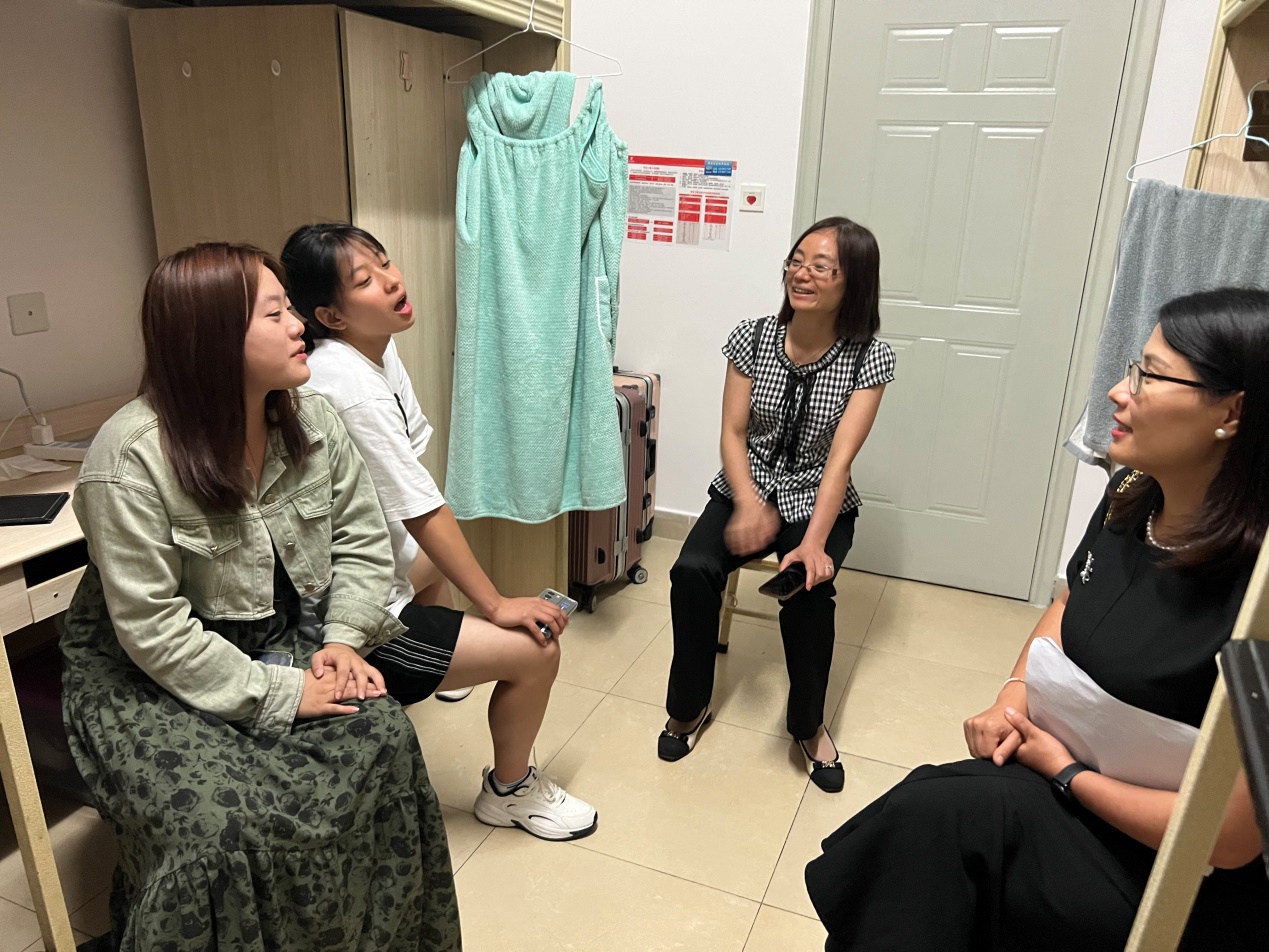 9月7日晚,为进一步加强学院师生交流,贴近新生实际生活,解决新生实际问题,学院党委书记张彦、党委副书记钟灵波、副院长何盛、唐觅,流行舞蹈系副主任陈鸥以及全体辅导员一行走访了45个新生寝室,看望来自全国各地的2023级新同学。