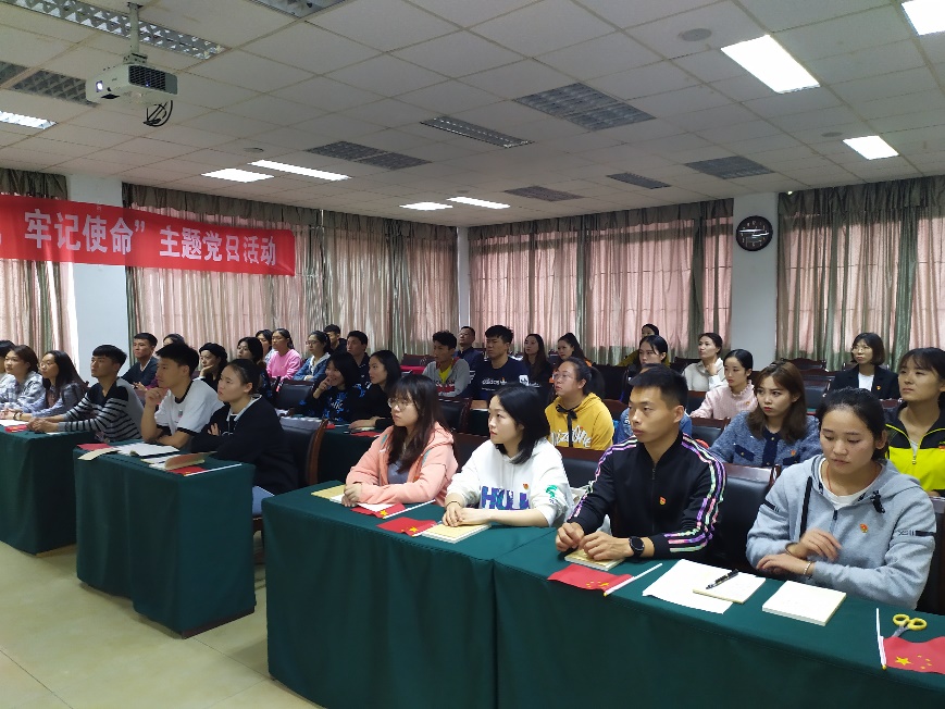 9月24日中午12点,伟德国际1949学生党总支在体育馆北会议室开展“不忘初心、牢记使命”主题教育部署会暨“我和我的祖国”主题党日活动,学院党委副书记钟灵波、学生党总支书记郭聪、团委书记魏崧丞及全体学生党员参加了本次活动。