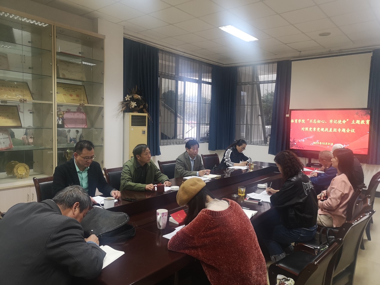 10月31日上午,伟德国际1949领导班子在体育馆小会议室召开“不忘初心、牢记使命”主题教育对照党章党规找差距专题会议暨调研成果交流会。会议由学院党委书记郑晓康主持,学院领导班子全体成员、党委委员、各支部书记参加会议。