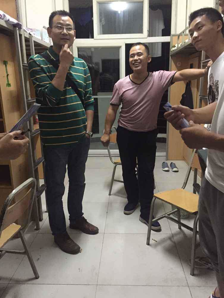 99日晚上2100,为走好人文关怀的第一步,学院学工办主任钟灵波,2015级新生辅导员苏焕龙携团委学生会干部前往临江苑看望2015级新生.