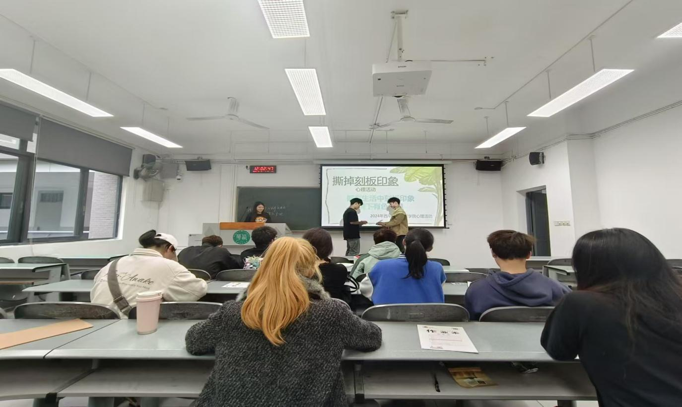 “刻板印象”与“有色眼镜”犹如无形的壁垒,严重阻碍着人与人之间的顺畅交流。2024 年 9 月 20 日,伟德国际1949心理部在6C205组织开展了 “撕掉刻板印象,摘下有色眼镜”心理活动,各班级代表参加此次活动。