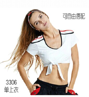 女款:夏天白色健美操上衣短袖或吊带,宝蓝色短裤