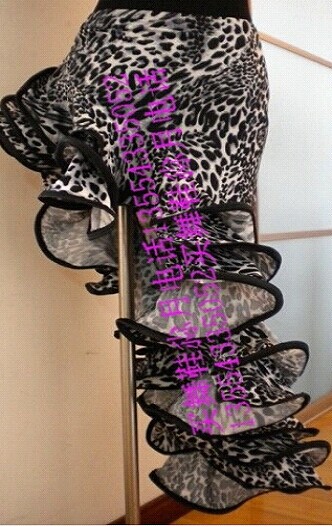 女款:黑色拉丁舞上衣或吊带上衣,裙子为大摆豹纹裙