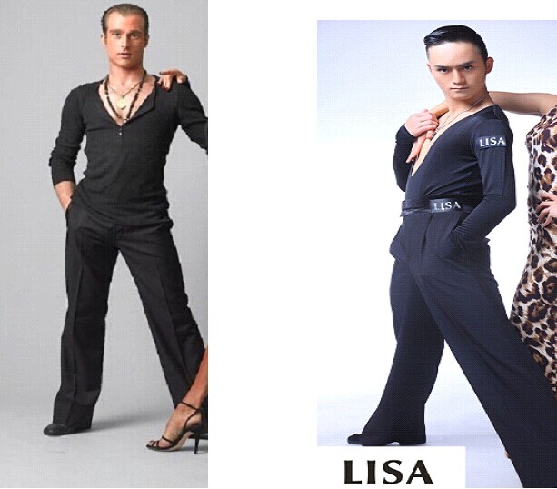 男款:黑色拉丁裤,开领黑、白、灰上衣