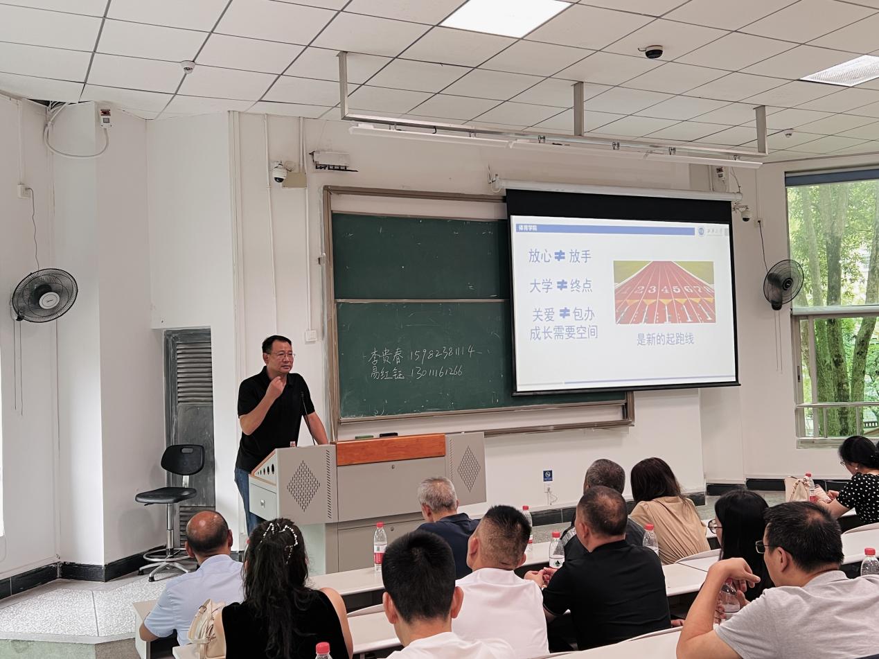 最后,学院党委副书记钟灵波作总结发言。他从“放心不等于放手”“大学不等于终点”“关爱不等于包办”三个维度,与家长分享了家校协同育人的理念与实践路径。钟书记强调,“放心”是信任,但绝非放任,呼吁家长在情感、方向和安全上持续给予孩子有智慧的关怀与引导;他指出,大学并非奋斗的终点,而是人生新的起跑线,鼓励学生保持拼搏精神、做好长远规划、全面提升综合素养;同时,他也提醒家长,真正的关爱是给予孩子独立成长的空间,培养其自主管理能力和责任意识,而非事事包办。钟书记表示,希望家长与学院携手并进,保持密切沟通,共同关注学生的身心健康和全面发展,为他们营造一个支持探索、鼓励成长的良好环境,真正实现“家校共育”、同心同向同行。
