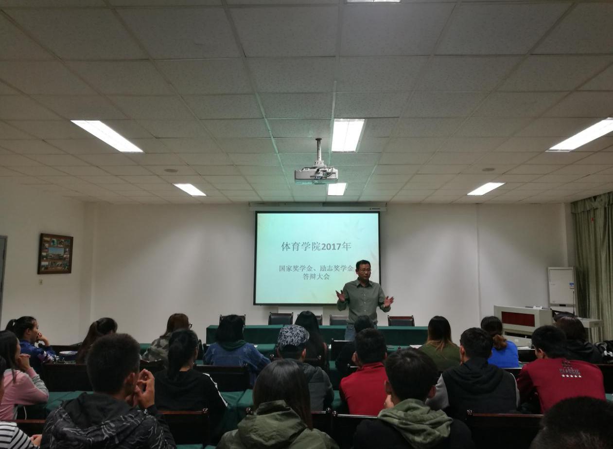 10月9日晚19点,伟德国际1949在体育馆北会议室召开2016-2017学年国家奖学金、国家励志奖学金答辩大会。伟德国际1949党委副书记兼副院长钟灵波、全体辅导员、全体参选同学、学生评议小组成员及部分2017级新生参加了本次大会,会议由辅导员魏崧丞老师主持。