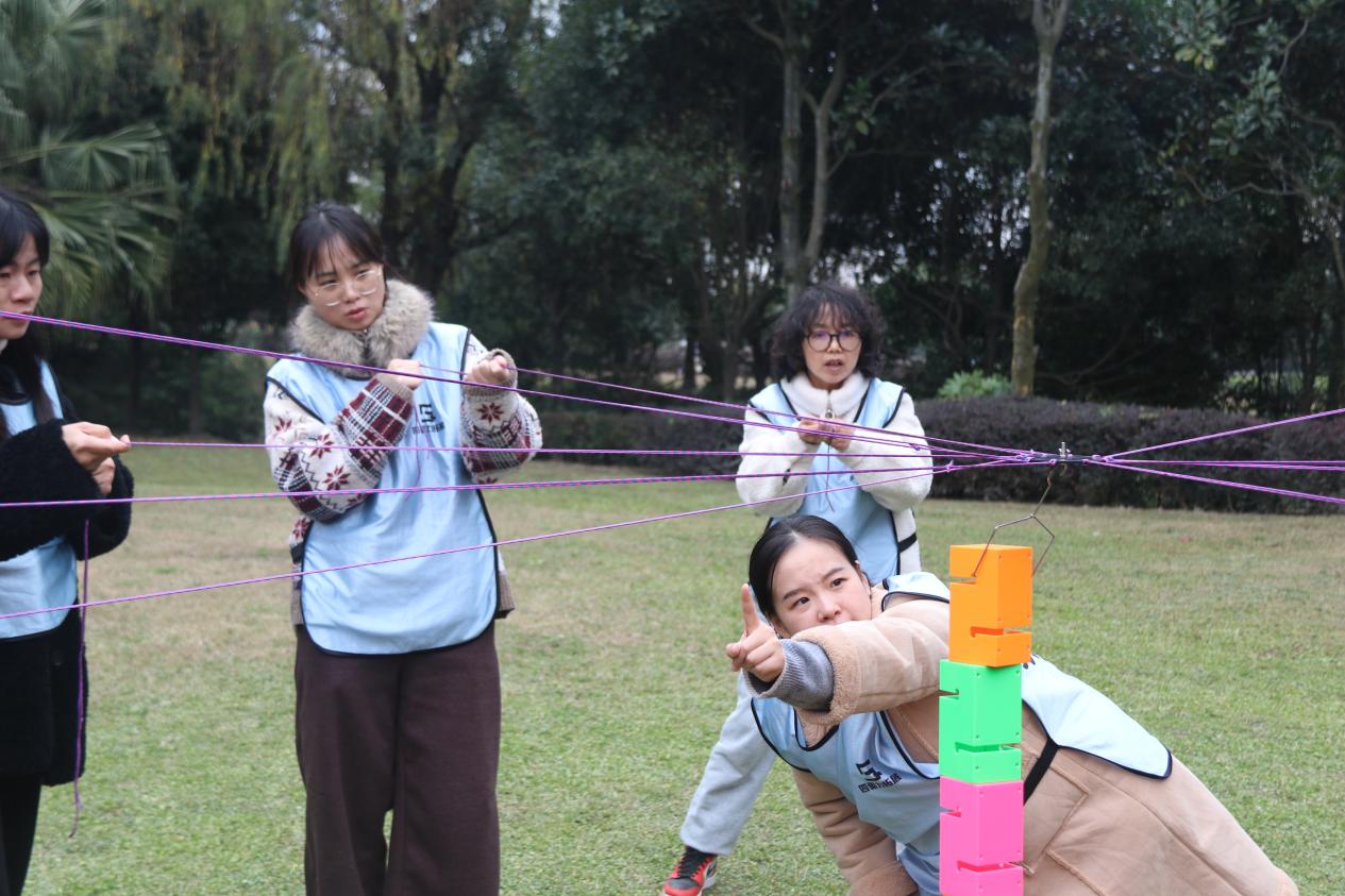“步步高升”游戏通过集体搭建任务,锻炼团队的耐心与执行力。