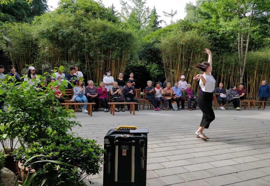 历经一个半小时的车程,学员们到达敬老院后立即按照计划分组开展社会实践活动,本次活动分为三组:一组学员负责为老人送上礼物、表演节目、为老人按摩、聊天;二组学员负责为敬老院打扫卫生,清理竹林落叶;三组学员帮助敬老院除草,倒垃圾。5月13日,恰逢母亲节,学员们为老人送上了歌曲、舞蹈,用温暖的语言陪伴老人度过了一个温暖、快乐的母亲节。看着敬老院的老人,学员们联想到父母渐渐老去,一生都在为孩子奔波,这大大激起学员们对父母的爱,希望在未来能够多留时间陪伴父母。在集体朗诵《父亲》时,学员们饱含情感,似乎通过《父亲》表达对父母的思念和爱。
