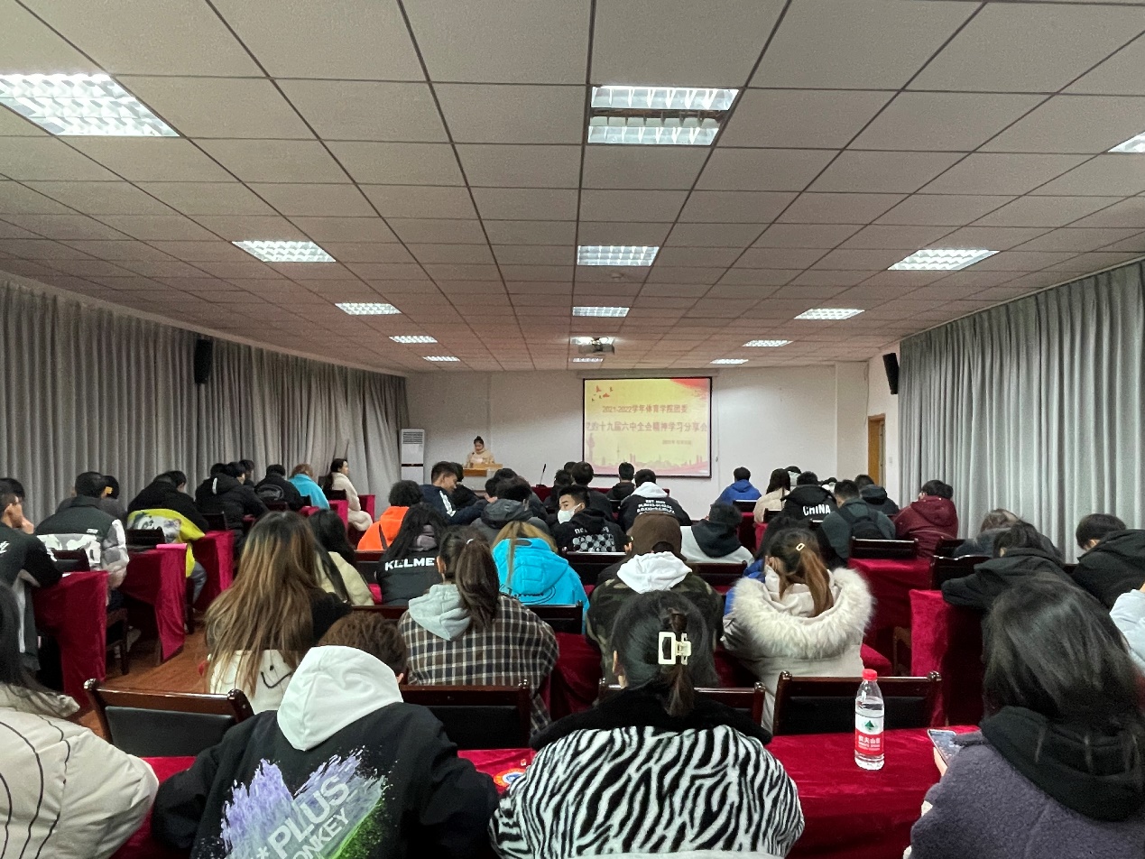 会议的开始,全体起立齐唱中国共青团团歌。团委书记魏崧丞带领同学们一起从新中国各发展阶段的历史经验和伟大成就,以及历史上三个重要决议开始学习,重点学习了十九届六中全会精神中的“两个确立”、“三个需要”、“五大历史意义”、“十个坚持”的重要内涵。她结合历史赋予的青年使命、共青团工作的职能,以“创新团建工作,提升支部活力,加强思想引领”和“优化第二课堂,加深育人实效,服务中心工作”两部分内容总结了本年度的学院共青团工作,并指出了工作中所存在的不足,提出了“立足学院、创新发展、发挥特色” 的工作规划。