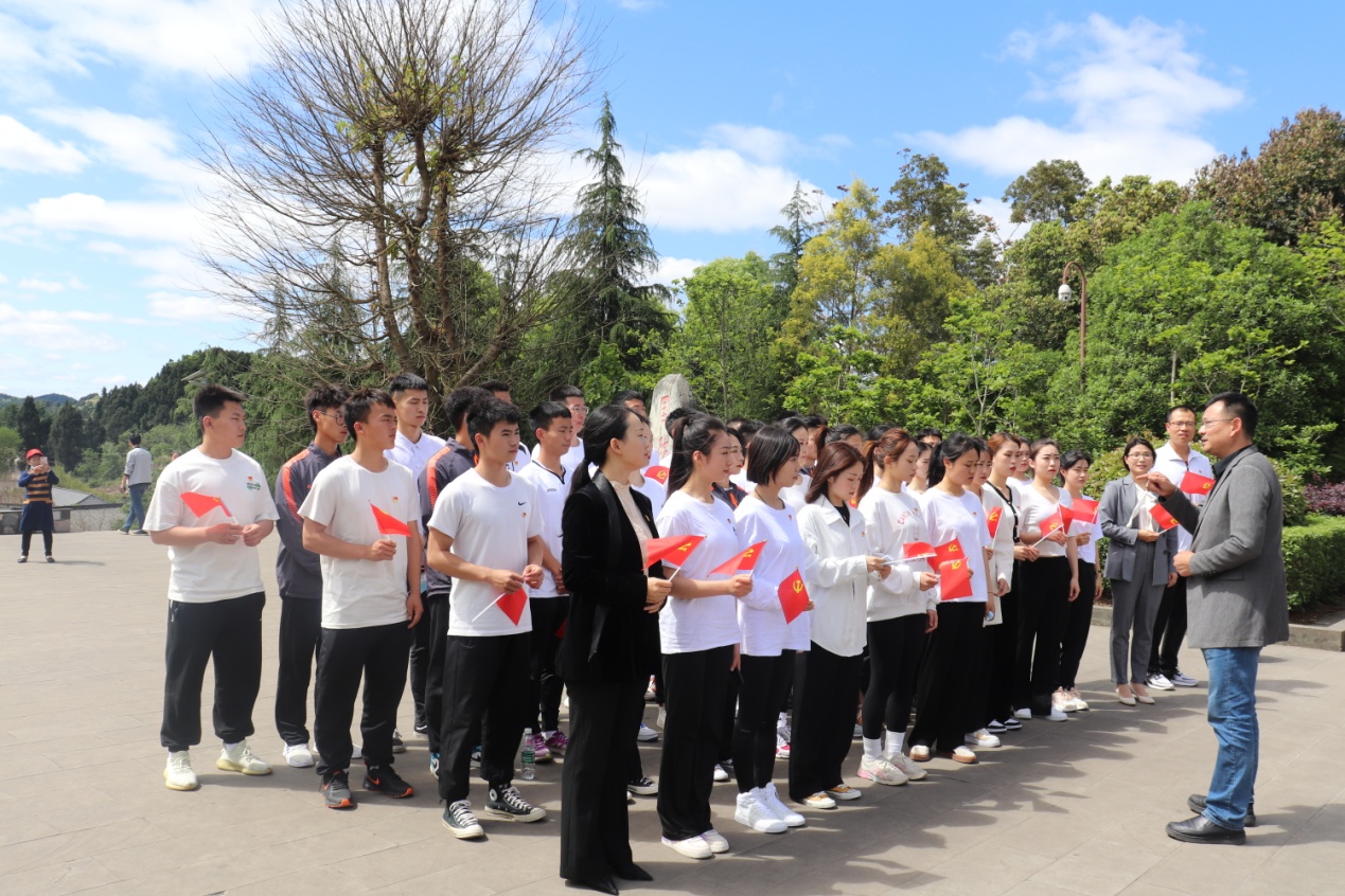 在陈毅元帅雕像前,党委副书记钟灵波介绍了为什么要开展党史学习教育、怎样开展党史学习教育、开展党史学习教育的目标和任务等内容,并希望通过此次团日活动,能让团员青年们加强党史学习,铭记党的恩情,肩负时代责任,努力开拓进取,以优异成绩展现青年担当,向党的百年华诞献礼。紧接着,团学干部代表重温了入团誓词。在鲜红的团旗下,大家庄严宣誓。铿锵有力的誓词直击人心、催人奋进,让每一位团员的心灵再次受到震撼和洗礼。唱支红歌给党听,用激昂嘹亮的歌声,表达爱党爱国之情,让红色基因、革命薪火代代传承。