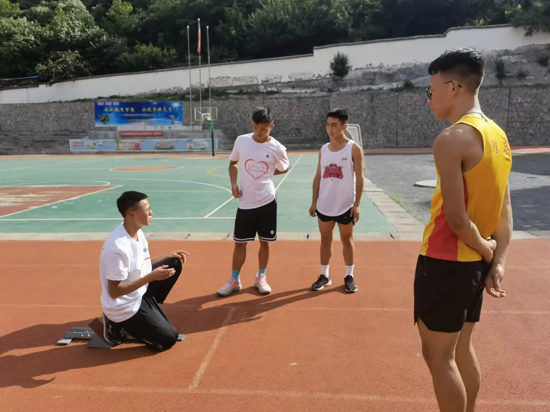 方案制定后,次日队员们正式开展活动。根据每人的专业特长将学生分成不同的小组,针对性开展专项训练。每一天训练结束后,团队成员都要与学生沟通交流,及时解决学生在生活、训练、学习中遇到的各种困难,帮助学生提振信心,鼓励他们刻苦训练,向自己的大学梦冲刺。同时成员们结合自身高考训练历程,向同学们分享自己的经验,引导学生们树立目标,调整心态积极备战高考。