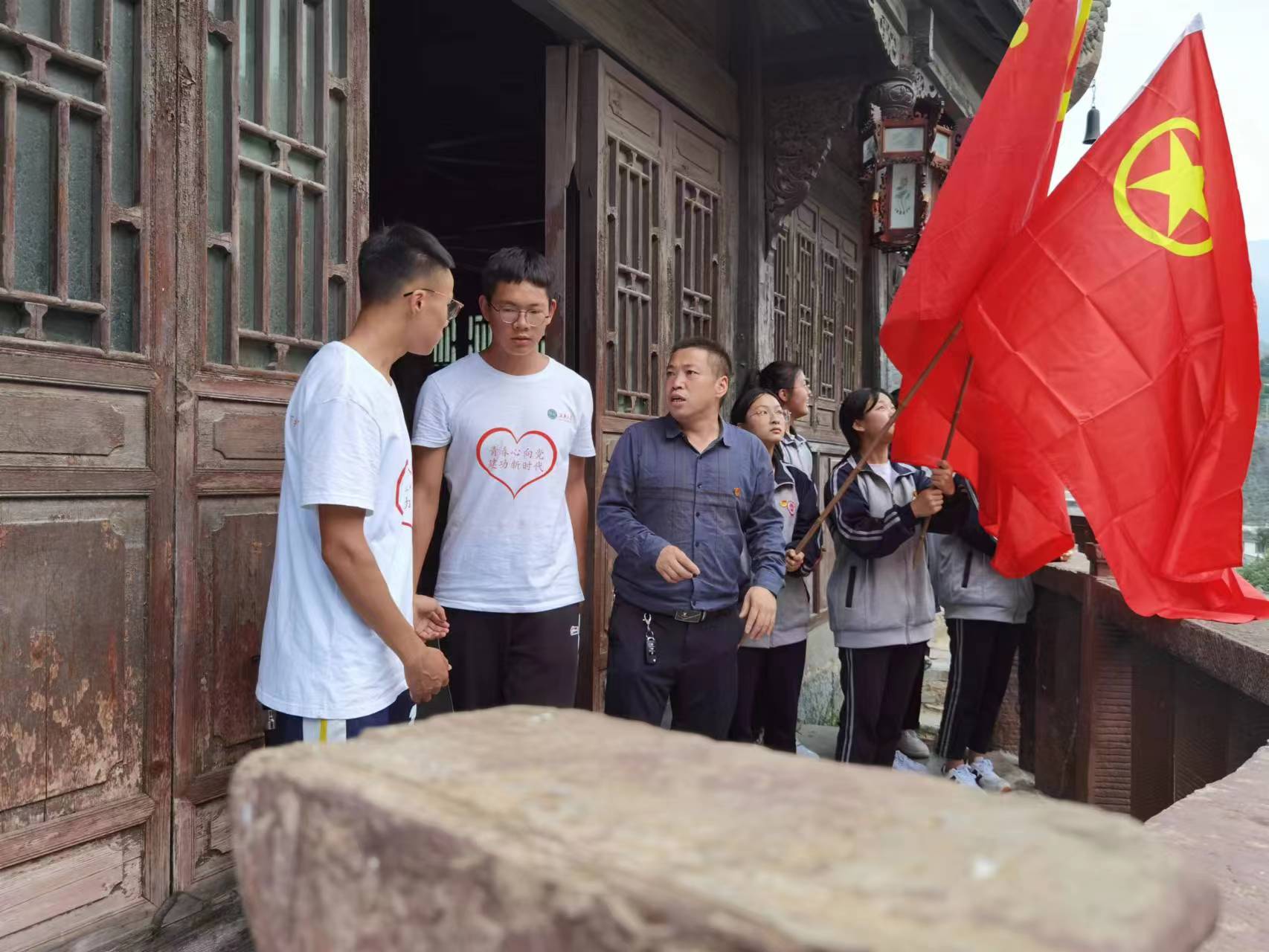 理县中学副校长邱胜强作为讲解员,为一行人讲解红军长征期间留在这里的故事。让同学们感受红军长征的艰苦岁月,继续继承和发扬长征精神。在红军雕像旁,共青团员重温入团誓词,增强同学们的团员意识。重温誓词就是重温当年的决心和信念,鞭策和激励自己,坚定理想信念,不忘初心、牢记使命。
