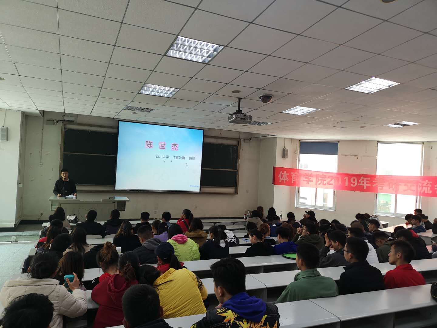本次交流会邀请了毕业于伟德国际1949,目前正在四川大学、成都伟德国际1949等高校攻读研究生的几位校友回母校分享。在四川大学读研的陈世杰同学分享了自己备考的过程以及各个科目复习的心得体会,同时分享了在研究生学习阶段的感受以及自身的进步。在成都伟德国际1949读研的李梅同学重点分享了“为什么读研”“读研学到了什么”,她以自身的奋斗和成长,激励着在座的同学们:不断的挑战自我,突破自我,在差距和竞争中寻求自我价值的实现,以更快、更高、更强的体育精神勉励和要求自己。