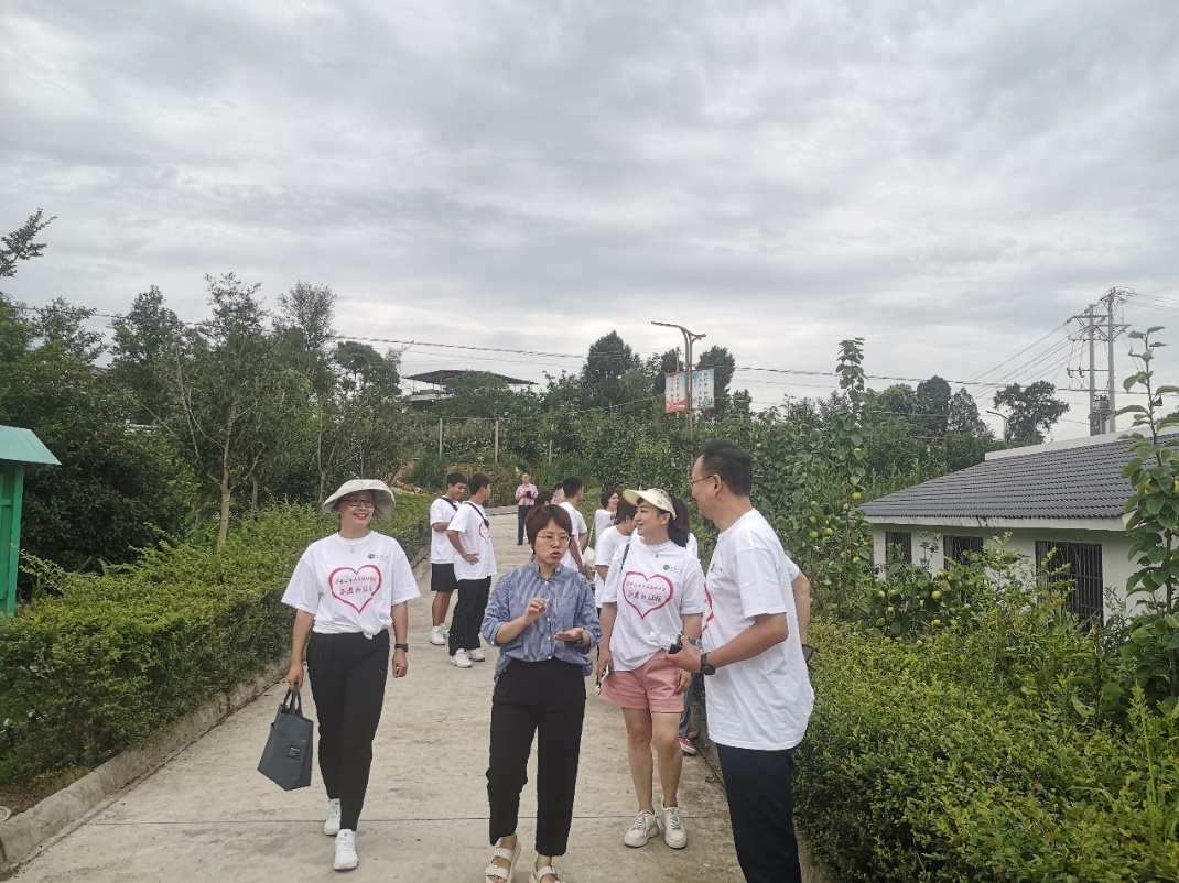 走进三会村,宽阔干净的水泥路两边梨树正值成熟期,一幢幢蓝顶白墙的两层小洋房有序坐落在道路两边,房前是青石板铺就的院坝,房后小庭院里的果树上硕果满枝,向我们展现出一幅现代乡村画卷。实践途中,正在做农活的阿姨看到我们到来,便采摘门前的梨和李子与我们分享,阿姨的热情就像香甜可口的水果沁人心脾。
