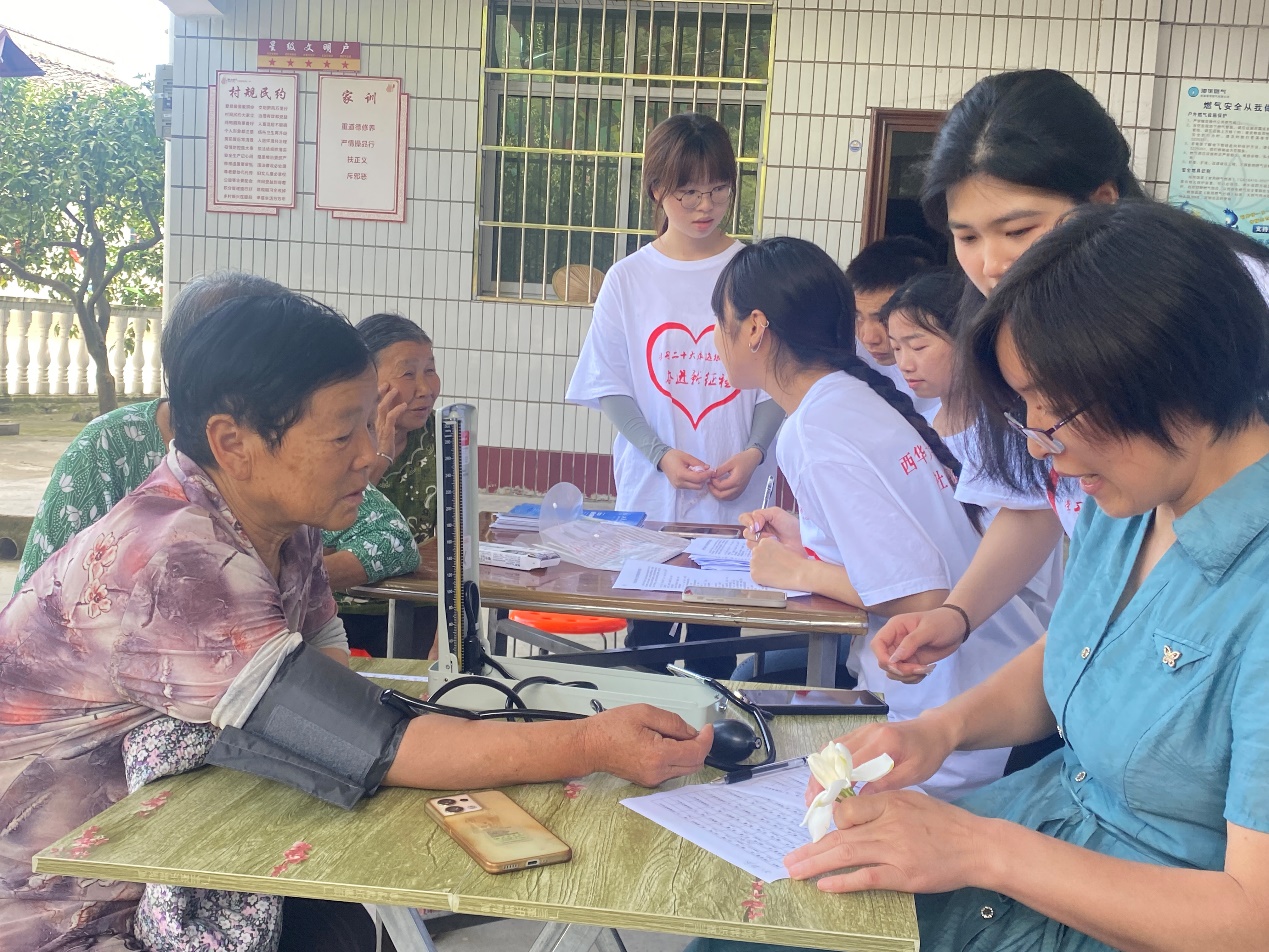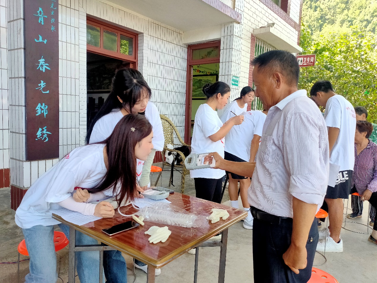 除此之外,团队成员为当地村民进行体质健康监测。大家分工合作,各司其职,共同完成了村民们的血压、血糖、肺活量、平衡力、腰臀比等项目的测量,并及时反馈村民身体状况,解答她们的问题,对于体质较差的村民,提供了合理的运动和饮食建议。监测结束后,团队将对数据进行整理,形成调研报告。